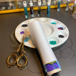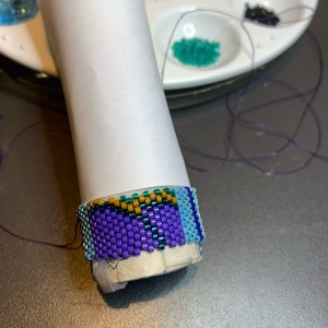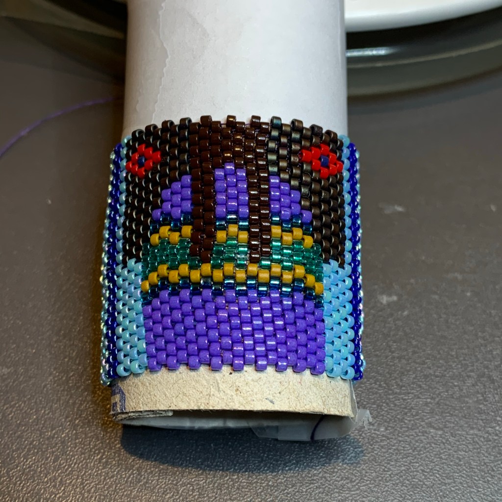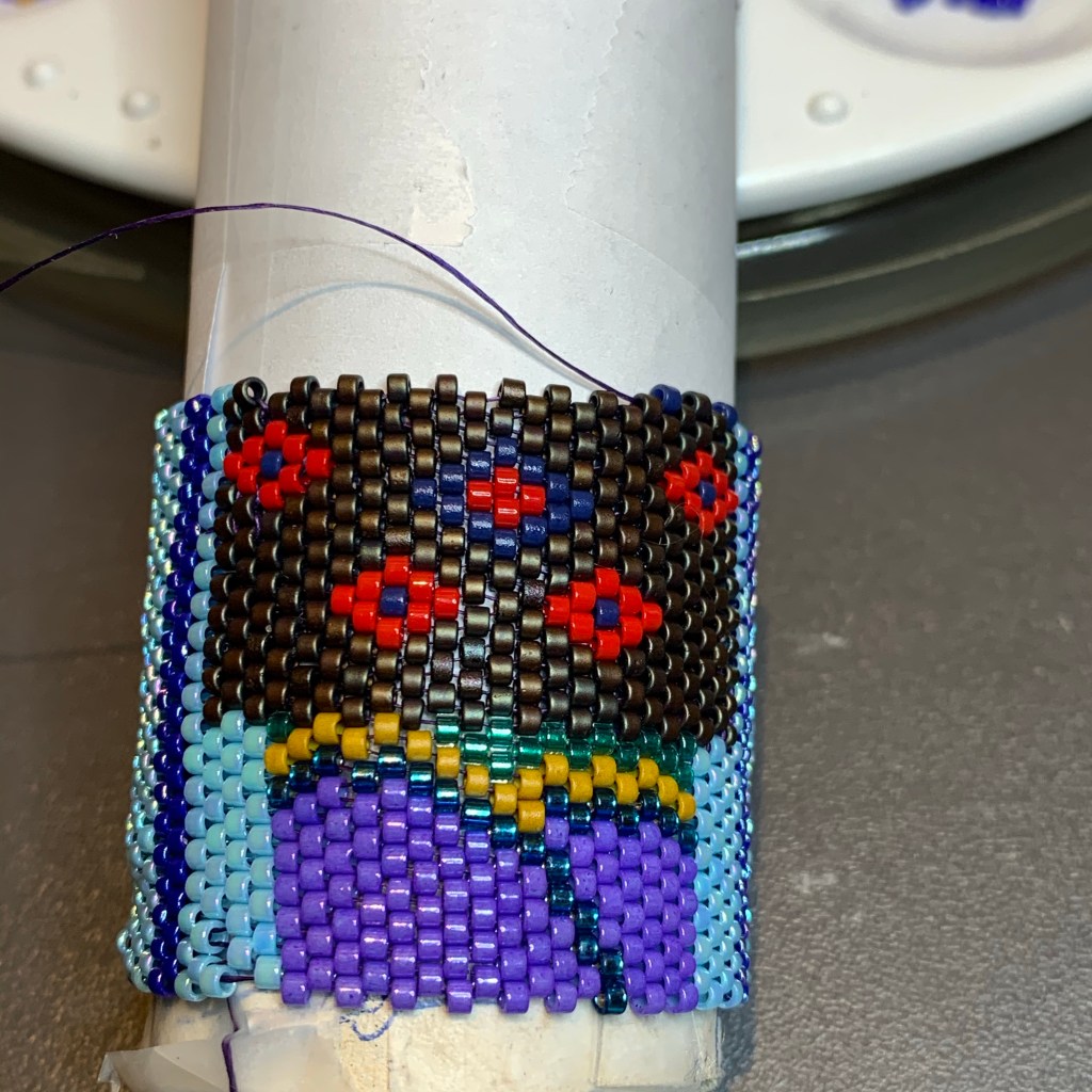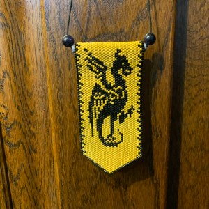 Created this dragon banner by modifying a bracelet pattern. It makes a nice addition to my workbench decor.