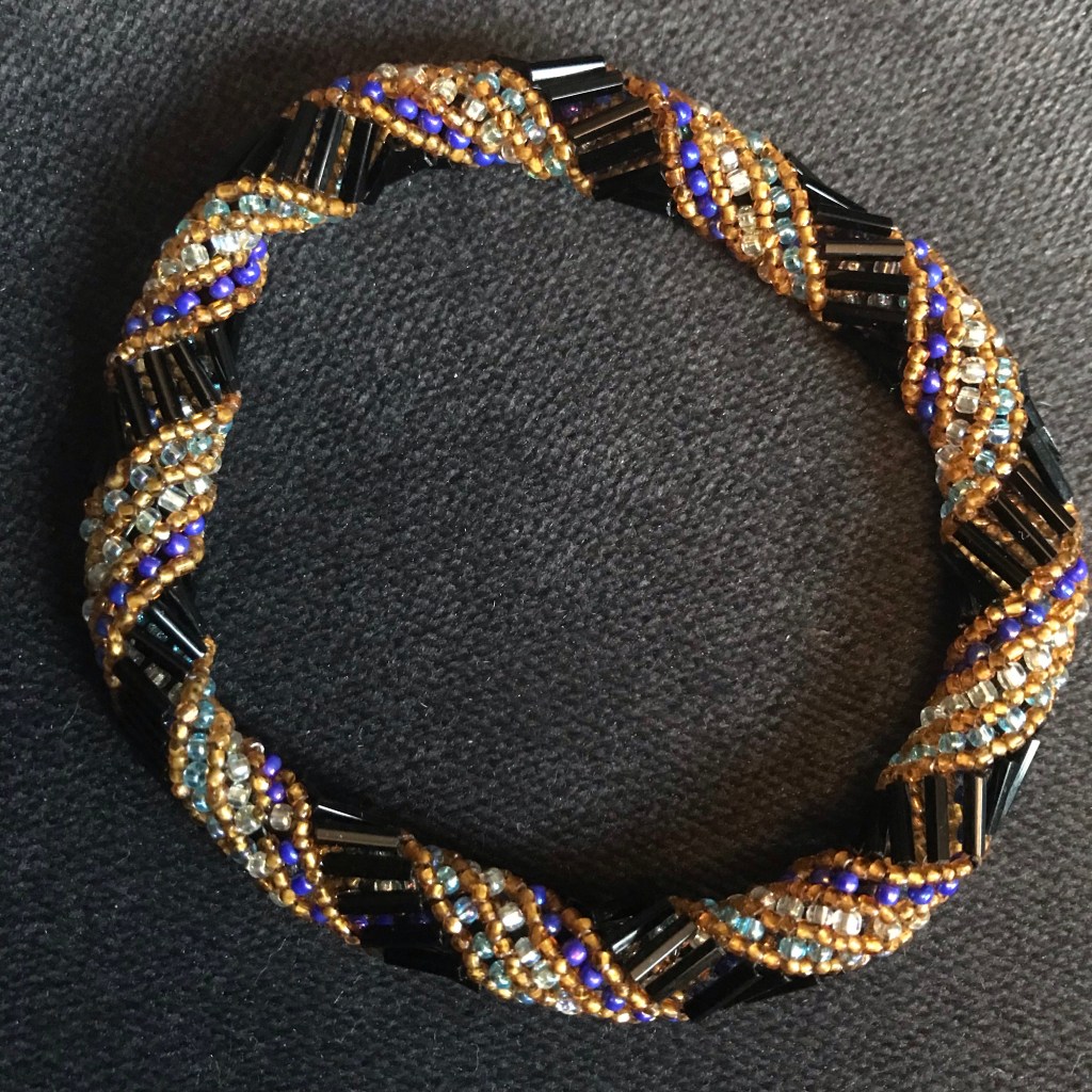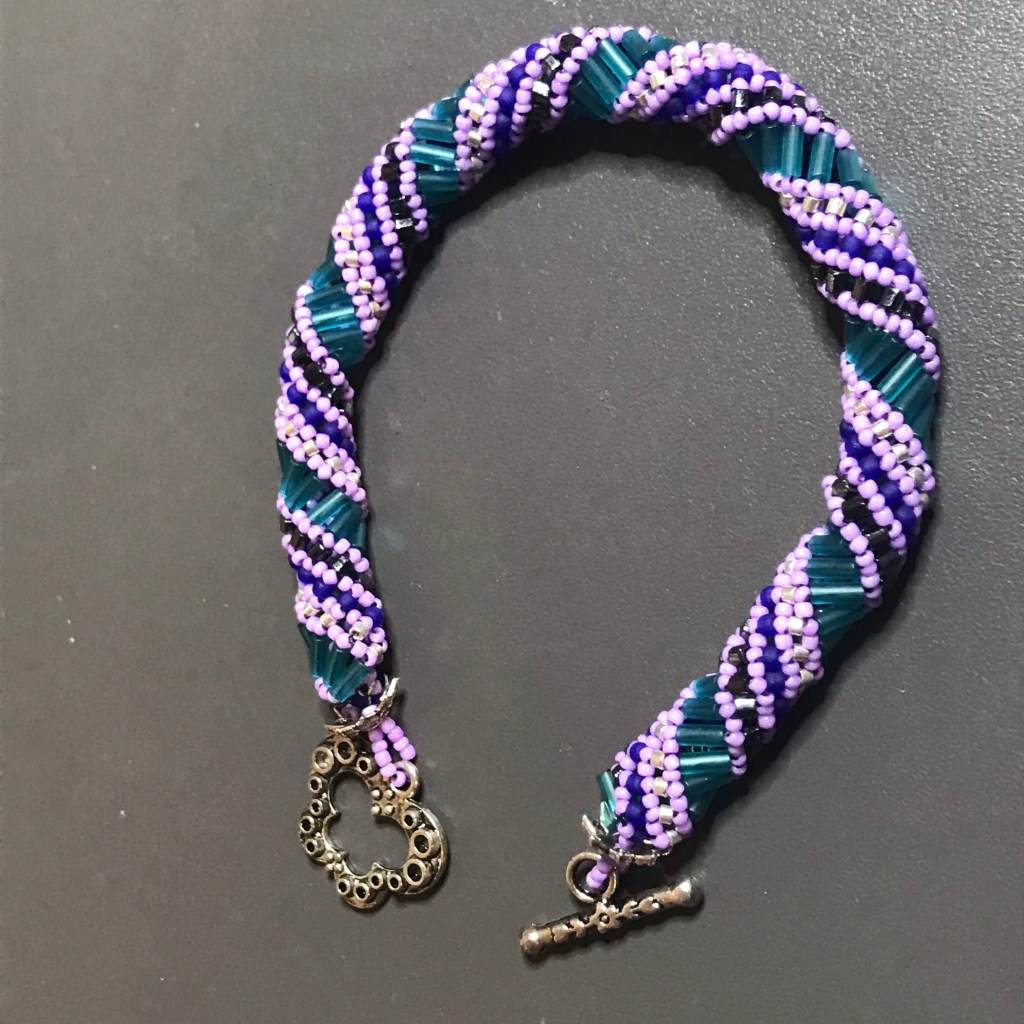 Completed part one of this two piece project. The second piece was started by my granddaughter. I will complete it as she is off to university. Some call these spiral bracelets, but they always remind me of DNA strands. They are so fun to make. Found this technique is Bead and Button magazine.