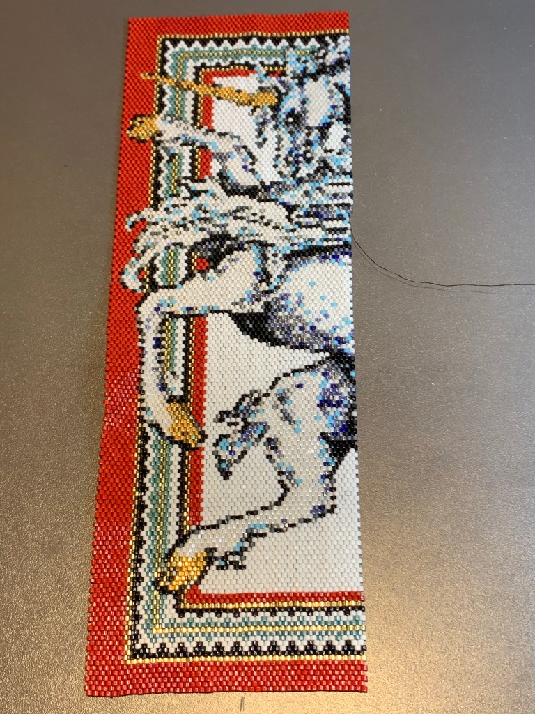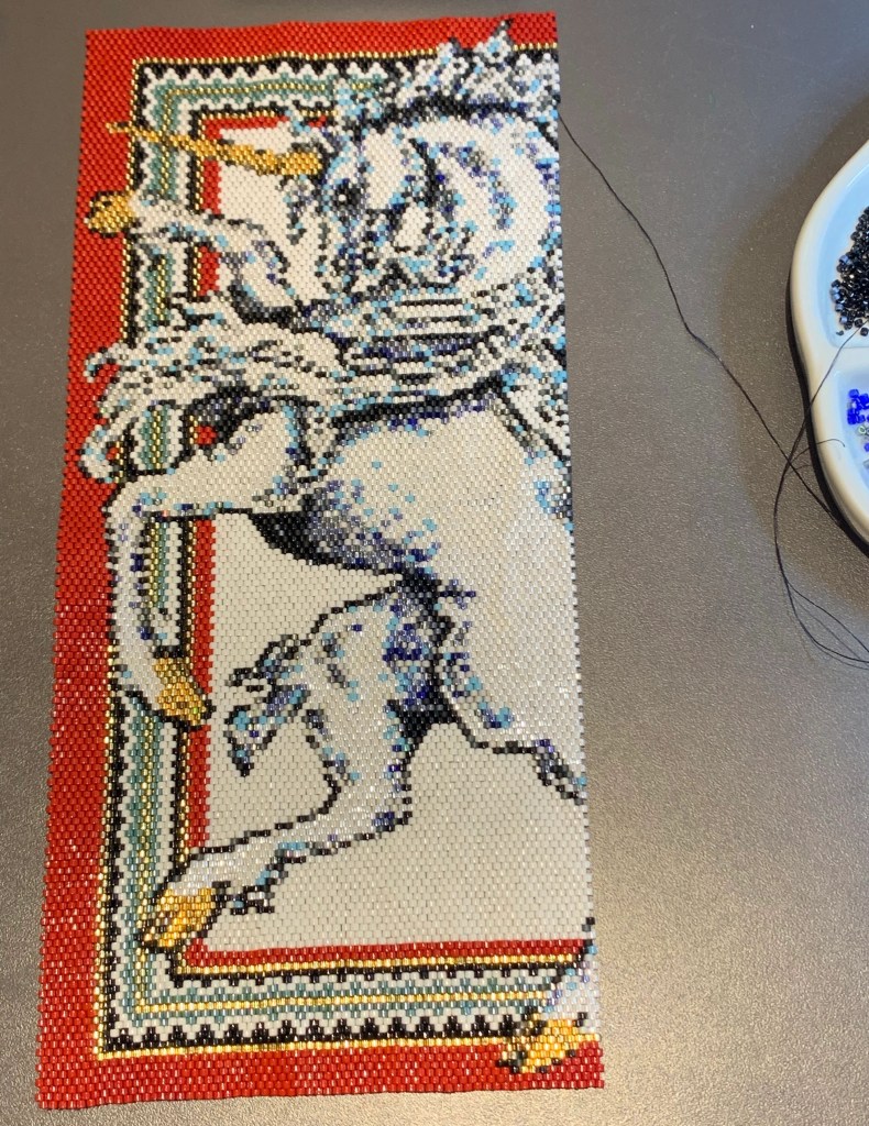 Just hit the half way point of the piece. now to set up for the next stage and think about how to finish display the beaded tapestry.