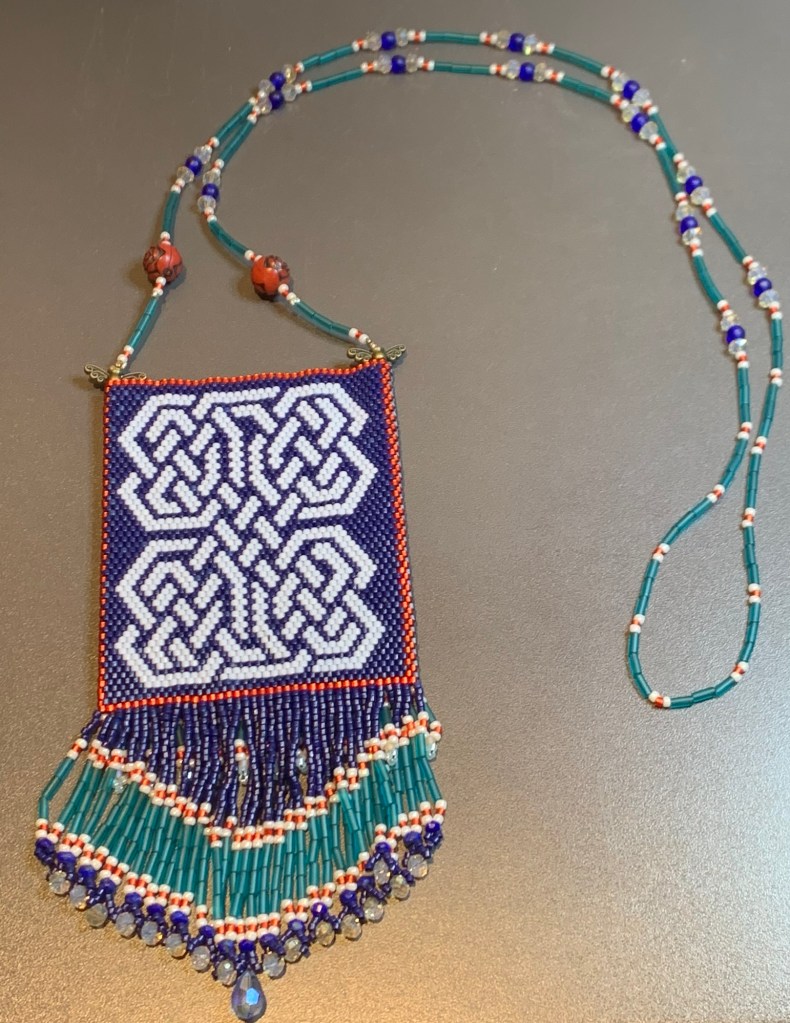 The body of the amulet bag is complete. It is interesting how the different light makes the colors change.