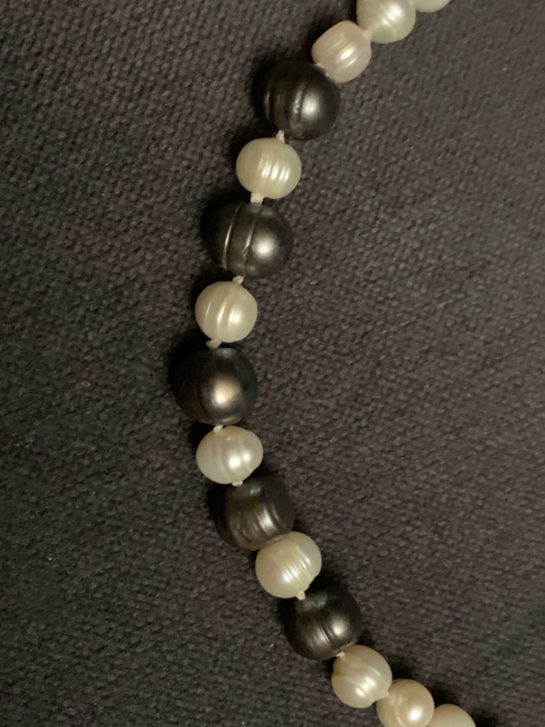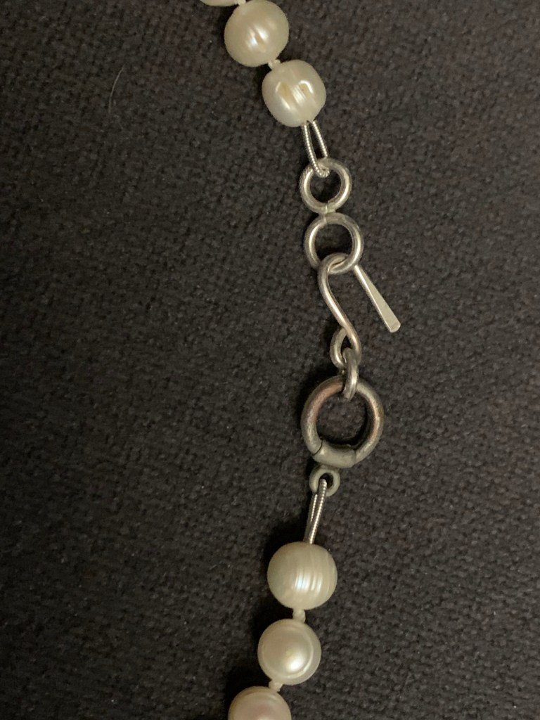 A friend asked me to repair a pearl necklace for her. It is the first time I have tried pearl knotting. Completely remade the piece. I like the way it came out.